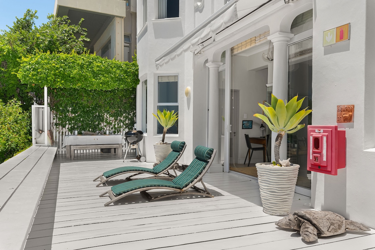 Ta trisobni bungalov je skriti dragulj za fontano z 180-stopinjskim pogledom na morje, ki je bil v celoti prenovljen in okusno oblikovan. Poslušajte valove, ki se lomijo na skalah, medtem ko se namakate v masažni kadi. Dnevni prostor odprtega tipa brez težav teče proti pokriti terasi s spektakularnim razgledom. Nahaja se le kratek sprehod od znamenitega plimskega bazena St James s svojimi svetlo obarvanimi garderobnimi kočami in nekaj minutami od deskarske plaže Muizenberg. Bosonogi razkošje še nikoli ni bilo boljše!