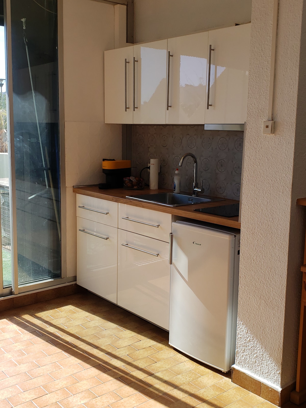 DOKONČAJTE PRENOVO 23 Pogled na morje in plažo...Z lesene terase lahko zajtrkujete ob sončnem vzhodu, obrnjeni proti morju, zadremate na kavču ali si privoščite aperitiv in uživate v sončnem zahodu. Garsonjera se nahaja v 3. nadstropju (z dvigalom) bivališča Héliopolis in je popolnoma opremljena (klimatska naprava, postelja 160x200, veliko shrambe, kopalnica, ločen WC, kuhinjska niša). Posteljnina in brisače so na voljo, Wi-Fi in zasebno parkirno mesto.