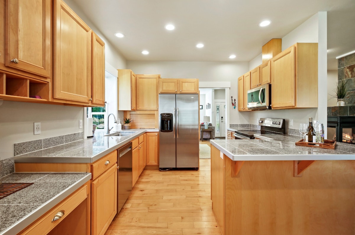Življenje je enostavno v Orlovem gnezdu - 1,5 milje od zaliva Gig Harbor Bay! Obdan z drevesom in dolino s pogledom na 24 velikih oken na 4 straneh. V 2. nadstropju velikosti 1200 kvadratnih čevljev se lahko sprostite. Ogromna popolnoma opremljena kuhinja vas bo navdušila in nahranila. Obokani stropi vam bodo pomagali, da se vaš duh dvigne! Uživajte v električnem kaminu, 75-palčnem z ravnim zaslonom in naslonjalnem kavču. Uživajte v kadi za 2 osebi ali prho za 2 osebi. Sprostite se na opremljeni terasi. Izkoristite občutek podeželja, medtem ko je to priročno za nakupovanje in dostop do avtoceste.