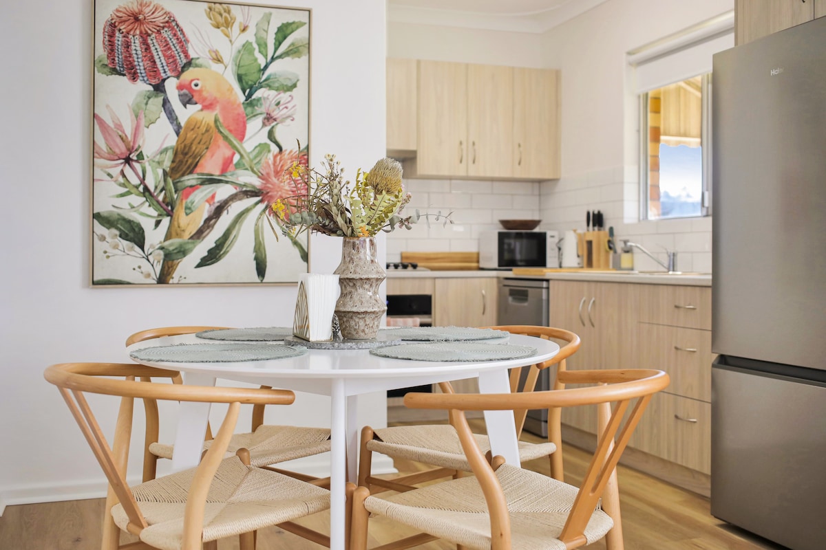 Nahajamo se v bližini letališča, odličnih plaž, javnega prevoza, restavracij/restavracij, odprtega pogleda. Všeč vam bodo naše super udobne postelje, čista, kakovostna posteljnina, zunanji sedeži na verandi, prostoren bivalni prostor (plinski ogenj in FOXTEL), velika kopalnica, kuhinjska niša (majhen hladilnik, mikrovalovna pečica, opekač kruha, grelnik vode) in varna soseska. Idealni smo za pare, samostojne pustolovce, poslovne potnike. Vaše bivališče je sprednja polovica našega prenočišča - ločena s povezovanjem vrat. Prispeli bomo, morda z rejnim hrtom.