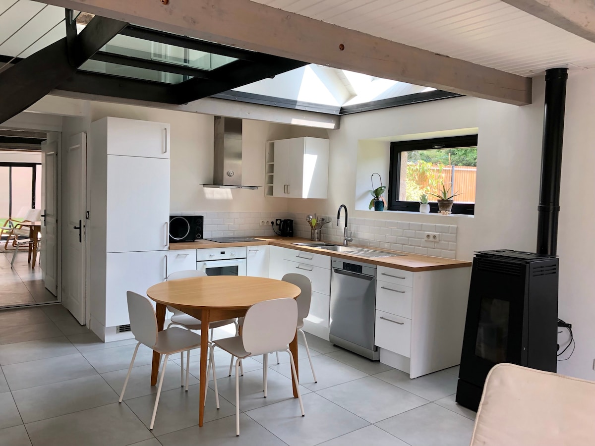 ★ UNIQUE ★ This charming Breton cottage, cozy and renovated by a heritage architect, offers a peaceful setting in the countryside, close to the forest and the seaside. Perfect for nature and stargazing lovers, it features a secluded outdoor bathtub, direct access to a private woodland, and a warm ambiance. Ideal for exploring Brittany and unwinding, this spot combines authentic charm and modern comfort for an unforgettable stay.