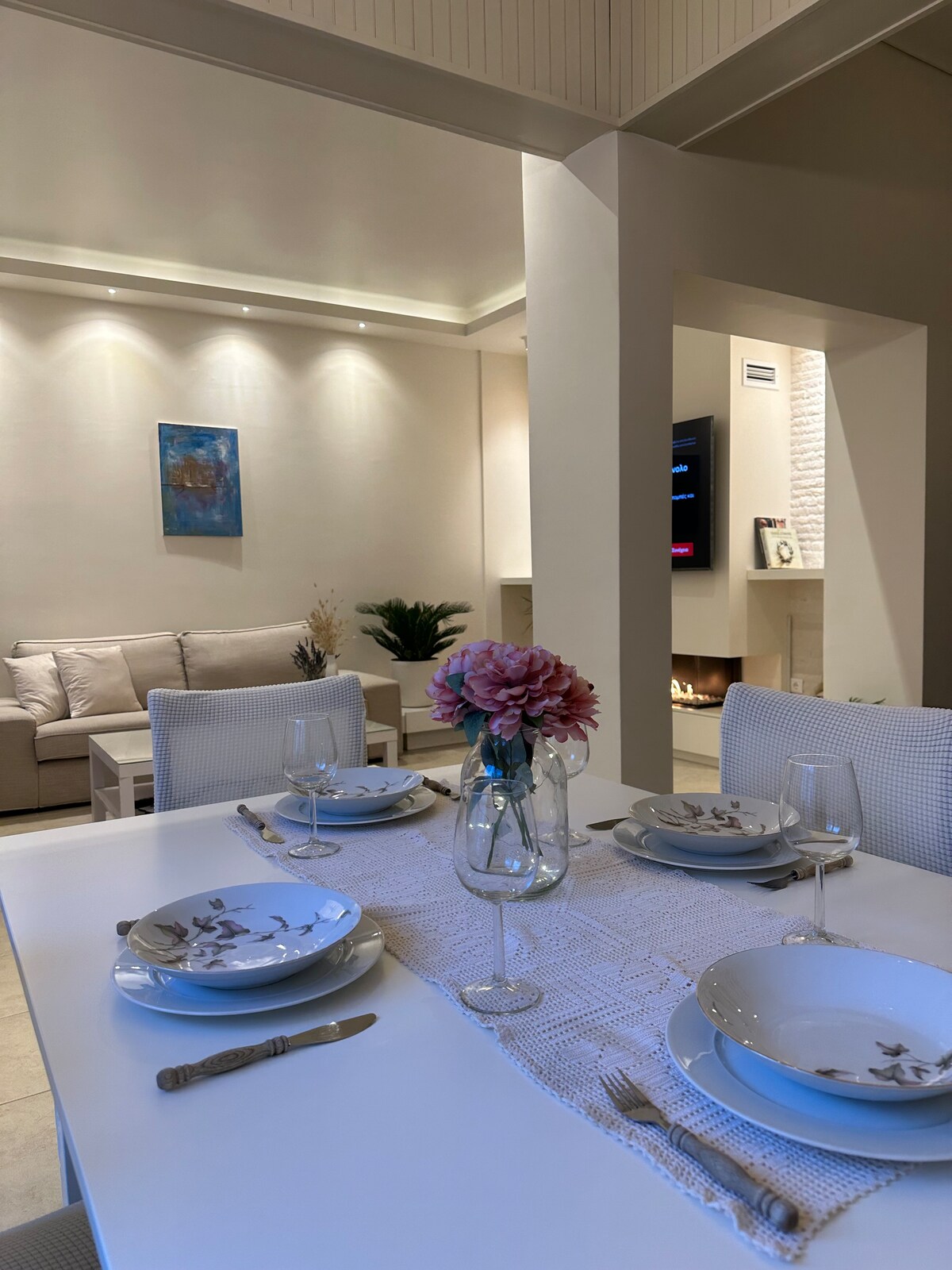 This stunning loft boasts a king-size bed atop a three-story building in Heraklion. Completely refurbished by an architect and interior designer, it features a generous modern living and dining area, a fully equipped kitchen, a workspace, and ample storage. The bathroom is highlighted by a spacious walk-in shower. Outside, a vast terrace offers abundant seating to unwind in the Cretan sunshine, ensuring privacy. Additionally, the apartment includes a fireplace for cozy winter evenings.