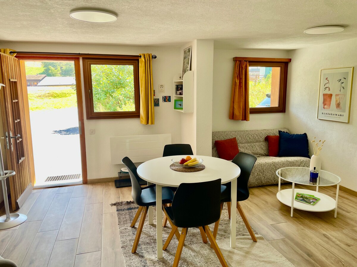 Čudovit, sončen in sodoben studio z odličnim pogledom na gore in dolino. Vse izhodiščne točke v bližini. Lep in sončen balkon. Sodobna dobro opremljena kuhinja, kopalnica s prho/kopalno kadjo, stranišče, umivalnik. TV, Wi-Fi/NETFLIX. Brezplačno parkiranje s parkirno kartico pred hišo. Nekaj korakov do središča Montane, brezplačni avtobusi. Smučarska soba/pralnica v hiši. V sončnem osrčju švicarskih Alp. Pohodništvo? Smučanje? Golf? Kolesarjenje? Uživajte v naravi? Plavanje? Sprehodite se okoli čudovitih jezer. Odlične restavracije, trgovine