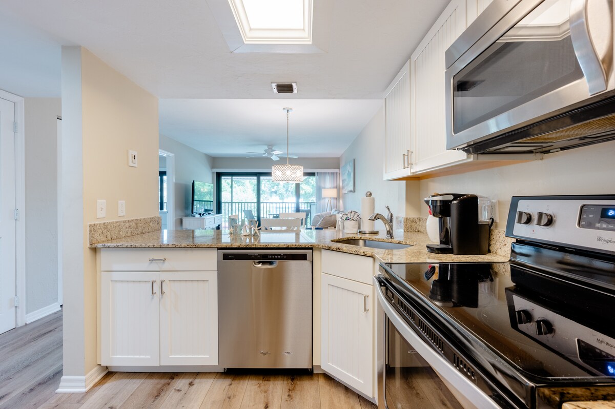 Plaža je le nekaj korakov stran od tega čudovito prenovljenega stanovanja. DOC's restaurant & jet ski rentals, directly over the street. Oprema za plažo je na voljo skupaj z vozičkom za prevoz. Razkošna kraljevska postelja z dodatnim plišastim ležiščem. Raztegljiv kavč z zakonsko posteljo. V naši garsonjeri lahko spijo do 3 osebe (2 odrasla, 1 otrok). Na novo prenovljeni bazeni so bili odprti 2. aprila 2025.