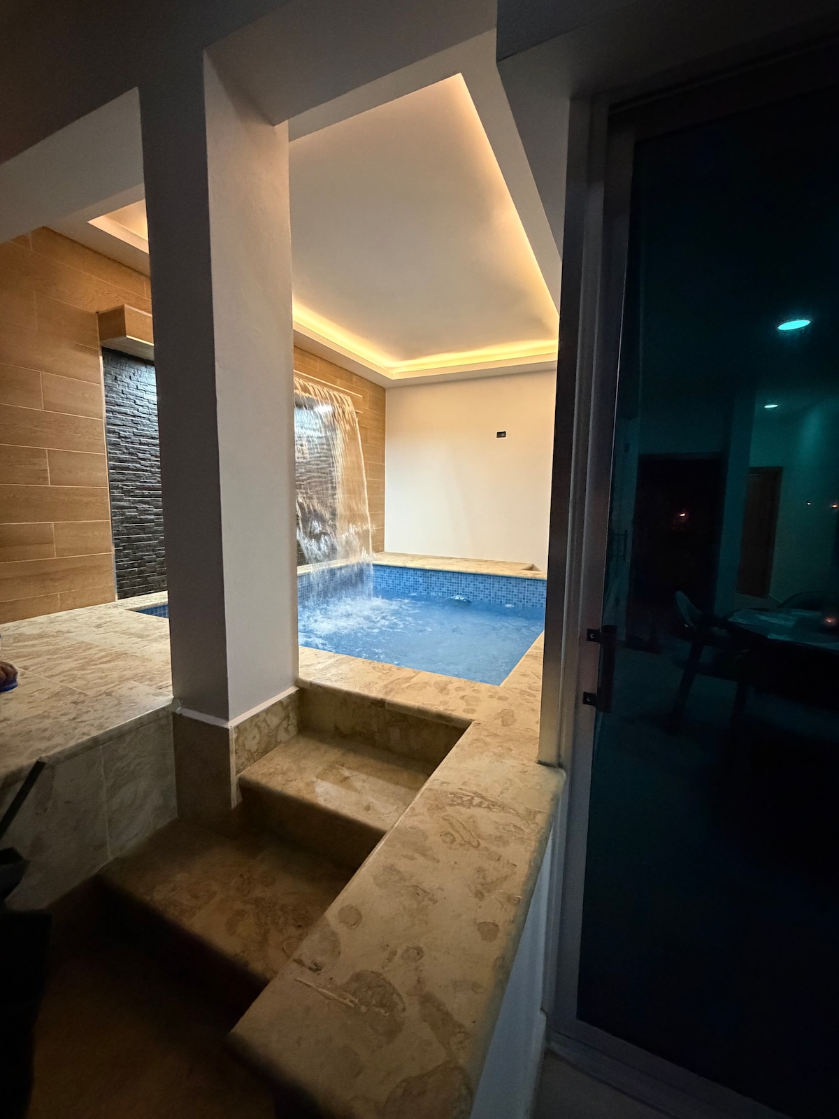 Dobrodošli v našem sodobnem, popolnoma opremljenem stanovanju v kraju Urbanization Neftalí III, le nekaj minut stran od živahnih nočnih klubov in restavracij. Uživajte v mirnem bivanju z dvema udobnima spalnicama, vključno z glavno suito z veliko zakonsko posteljo in kopalnico. Naš bivalni prostor je kot nalašč za sprostitev s 65-palčno pametno televizijo in hitrim internetom. Kuhinja je opremljena za vaše kulinarične potrebe. Izkoristite naš bazen, zasebni balkon in enostaven dostop do lokalnih znamenitosti. Čaka vas mirno zatočišče z urbanim udobjem.