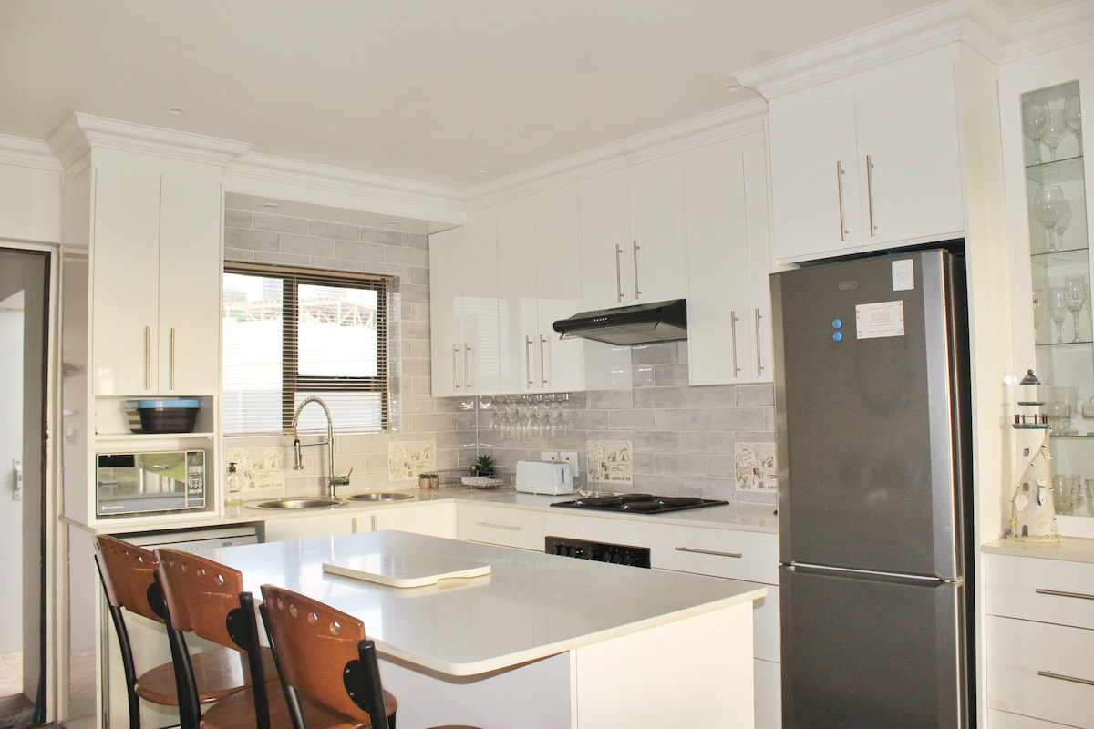 Enjoy the best of both worlds at this spacious beach house with stunning mountain views, just a short walk to Onrus Beach. Perfect for families or groups, it sleeps 10 across a 3-bedroom main house and separate flatlet for 4. Relax in the splash pool, enjoy mountain sunsets, or challenge friends to ping pong. In winter the big fireplace/indoor braai creates a wonderful warm atmosphere. Fully equipped and close to local cafes and nature, it’s ideal for a fun, relaxing getaway by the sea.