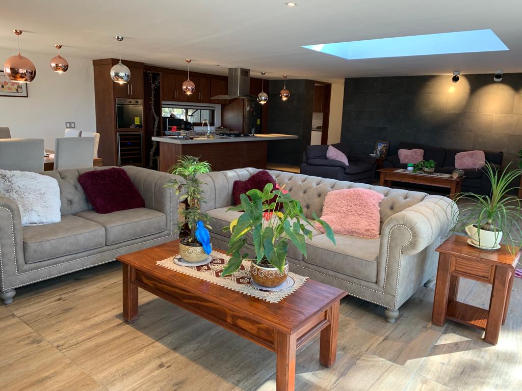 Ta hiša se nahaja v mirnem predelu v Tepeji del Riu in ponuja popoln oddih za počitek. Z veliko teraso in vrtom, ki se odpira na osupljiv razgled na igrišče za golf, lahko uživate v naravi in spokojnosti, ki ga obdaja. Hiša ima svetle prostore, sodoben industrijski in udoben slog, ki je idealen za sprostitev in odklop od mestnega vrveža. Spodbudite se, da uživate v zasluženem počitku v naravnem in gostoljubnem okolju.