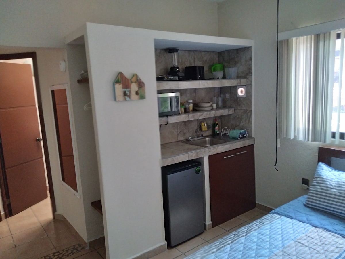 Sodobno/luksuzno mini podstrešje v Veracruzu. 1 spalnica z zakonsko posteljo in kopalnico. Dnevna soba z raztegljivim kavčem, majhna jedilnica in 2 televizorja. Opremljena kuhinja: minibar, aparat za kavo in mikrovalovna pečica. Popolnoma klimatizirano. Neodvisen dostop. Lokacija: 1 ulico od Av. Martí, 2 ulici od bulvarja in plaže, 5 min do akvarija, 12 min do centra mesta. Posteljnina in brisače so vključene. Udobno, zasebno in centralno.