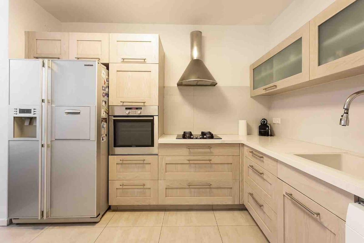 Prepustite se eleganci tega izvrstnega stanovanja. Veličastno prenočišče ima ogromen dnevni prostor odprtega tipa, popolnoma belo enobarvno notranjost, ki je v nasprotju z lesenimi površinami, minimalistično estetiko, zasebno savno, zasebnim jacuzzijem in ograjeno teraso z žarom. Naše stanovanje je oddaljeno minuto hoje od trga Dizinghof in 6 minut hoje do plaže. Prostor je zelo opremljen in razmeroma nov. Naše stanovanje je eno minuto hoje stran od trga Dizinghof in šest minut hoje od plaže . Restavracije in kavarne so povsod. Do pristanišča Aviva ali Jaffa potrebujete približno 25-30 minut hoje