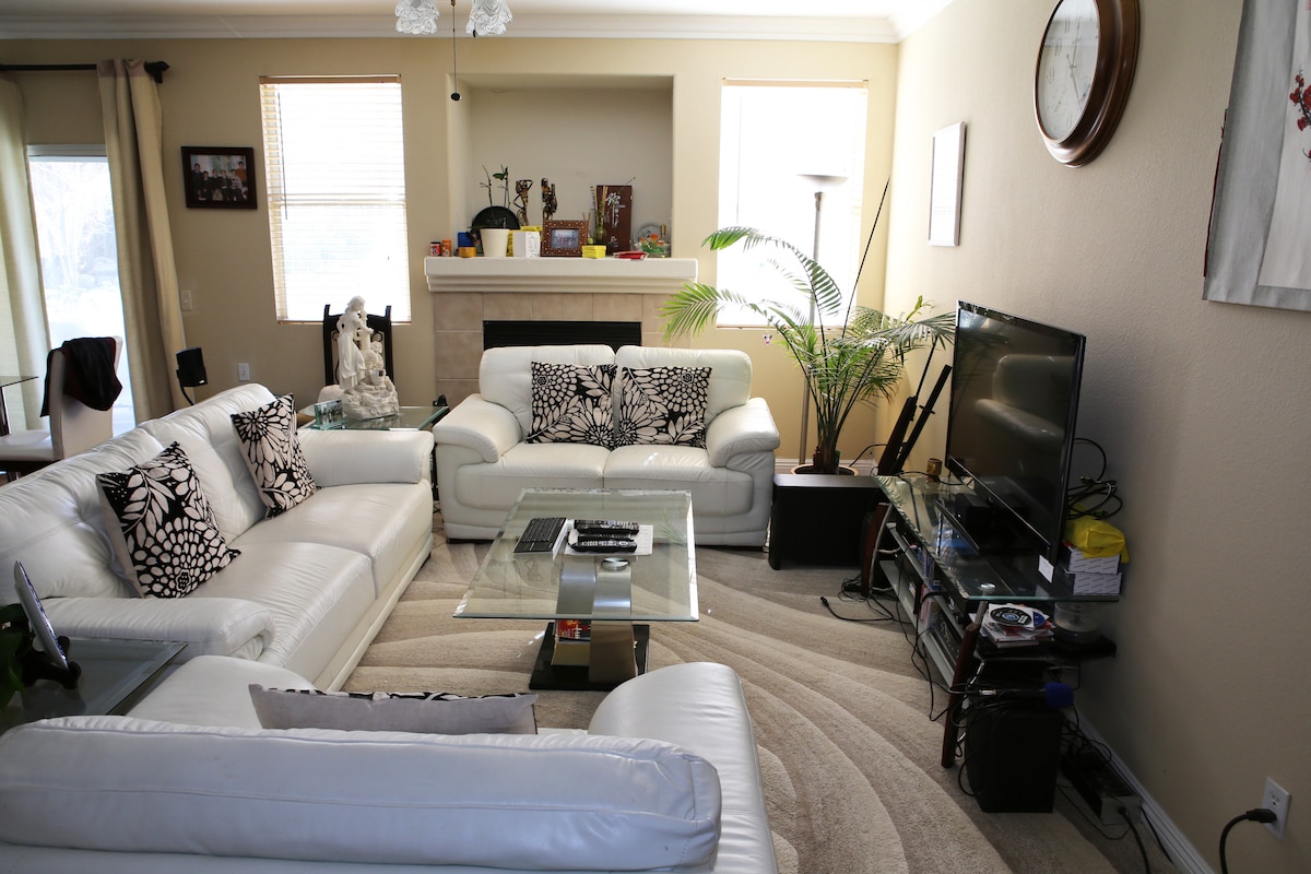 Celotna hiša 3 spalnice, 2 kopalnici, kuhinja, pralni in sušilni stroj. Centralno ogrevanje in hlajenje. Prostorna dnevna soba. Naša lokacija je zelo blizu Fwy 15, nakupovalna središča, restavracije, bolnišnica, supermarket, lekarne, bivališče je varna in mirna soseska. V tej hiši ni ZABAVE ali DOGODKA. Zelo mirna soseska. Ne maramo hrupa.