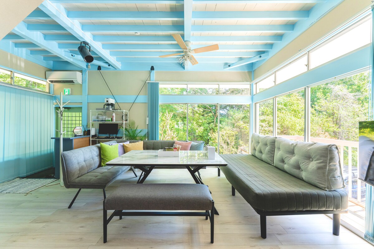 This listing is located in the holiday villa area in Ajiro which is only 10 minutes away from Atami Central. As it is located in higher level, every room has the great ocean view! Enjoy the beautiful view in a comfortable queen bed, living room or balcony. Also this accommodation has a stone-made traditional styled bathroom where you can enjoy the natural hot springs :-) Please get relaxed in this new accommodation built in Apr 2021 and enjoy your trip in Atami!