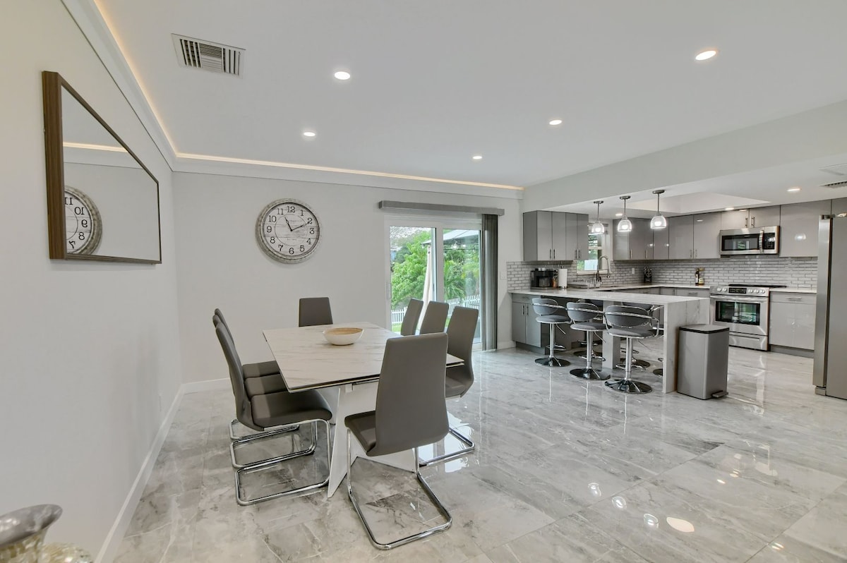 Dobrodošli v svetlem in zračnem studiu Villa Blanca, ki ponuja plišasto pohištvo in visokokakovostno opremo. Ta skriti dragulj, ki je skrbno zasnovan z lesenimi tlemi, elegantnimi zaključki in barvnimi pikami, je lahko vaš. 5% najboljših prenočišč. ♥ Pralni in sušilni stroj ♥ 15 minut do letališča FLL, Port Everglades, igralnice Hard Rock in stadiona Chase ♥ 10 minut do središča mesta/restavracij/plaže ♥ Zasebni vhod in samostojni vstop ♥ Brezplačno parkiranje izven ulice ♥ WFH pripravljen ♥ Plažni stoli in brisače