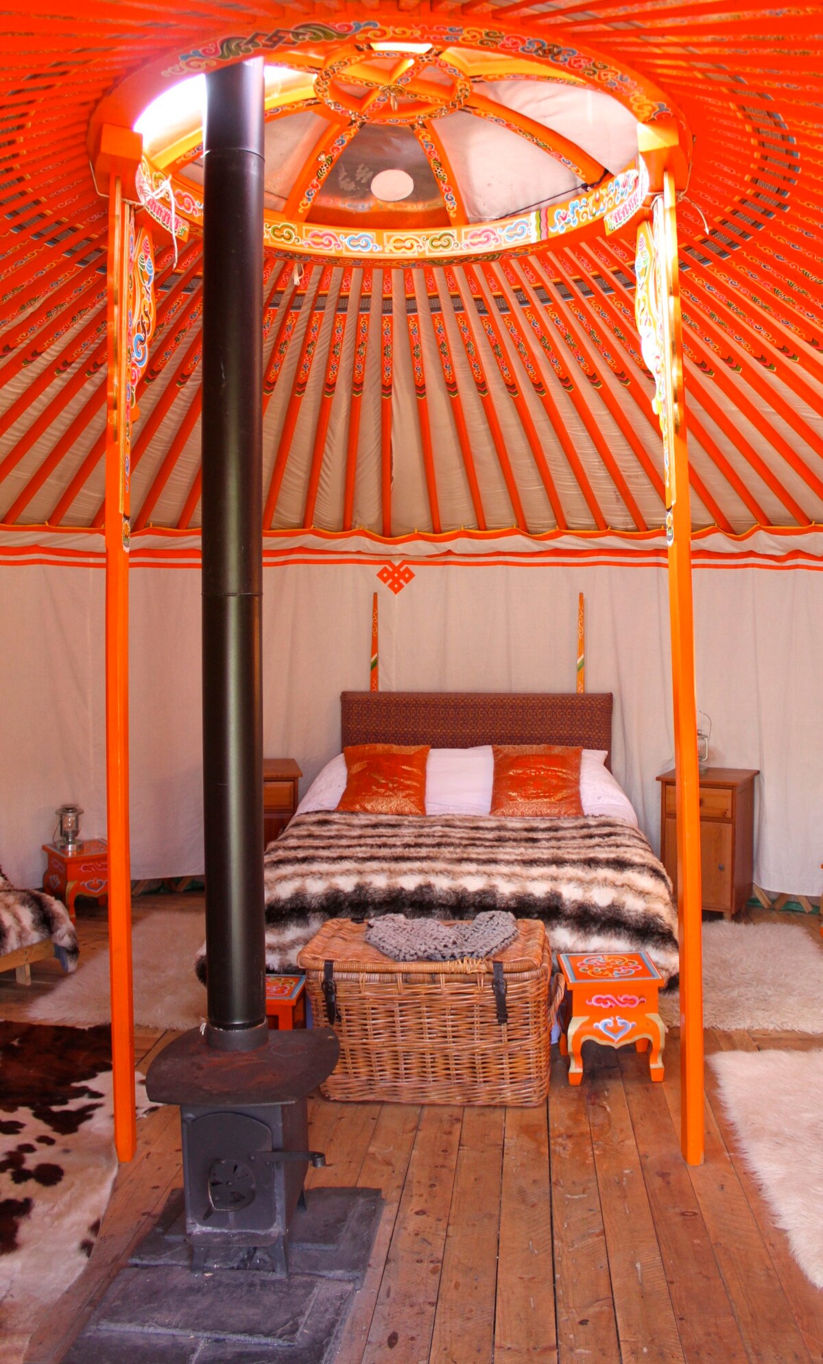 Our Element themed yurts are Glamorous Camping at it's best! Comfortably furnished, heated by a log burning stove, lined and insulated. Communal facilities include shower room, fully equipped kitchen, dining area ,and composting loo block. We offer discounts to families with children under 12, please get in touch for more details. NB if you require additional sets of bedding, e.g 2 beds for 2 guests, we will charge £15 per set to cover the additional laundry.