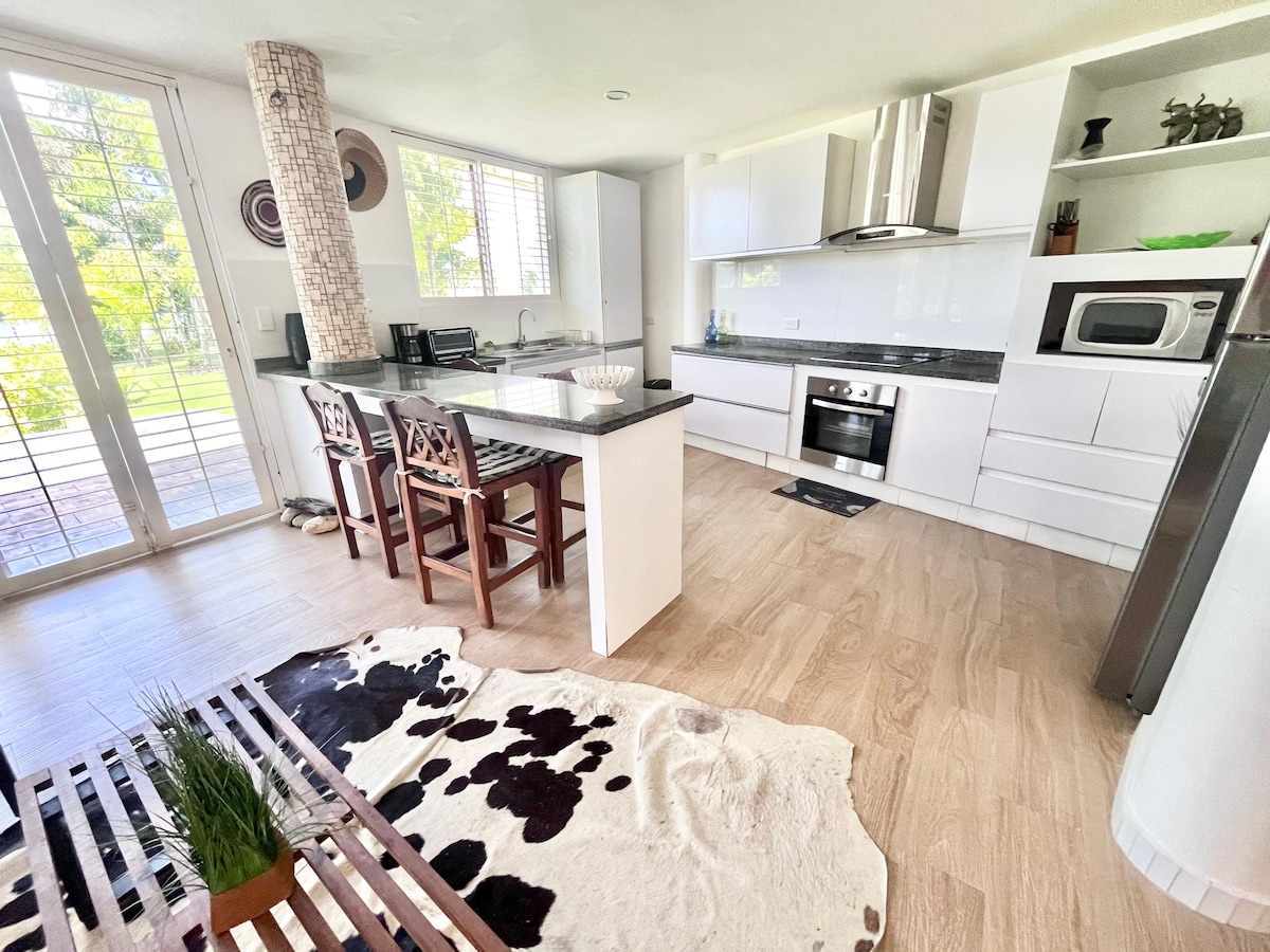 Un Oasis en los canales de Puerto Encantado. Para 5 personas en cama y 2 en sofá cama. No se permiten FIESTAS, ni visitas que no estén registradas como huéspedes. En las 2 habitaciones hay un control del aire acondicionado para ambas.
