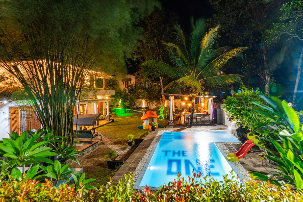 Villa THE ONE Hikkaduwa je veličastna in elegantna vila v dveh nadstropjih s površino 2000 čevljev in je zasnovana v evropskem arhitekturnem slogu s hladnim, vetrovnim, dobro vzdrževanim vrtom in zasebnim bazenom. Je popoln za samske popotnike, pare ali družine z otroki, ki želijo bivati v varnem in se sprostiti ter vas povabiti, da se sprostite in obnovite svojo energijo. Osrečujte goste, osrečite nas