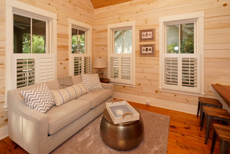 The Chic Bluffton Cottage is a one bedroom, one bath unique home in the heart of Old Town Bluffton. The unique all natural pine cottage has an open living space that offers a full kitchen.. The home has a very natural pine smell with walls and floors completely authentic. The home is walking distance to all shopping and restaurants