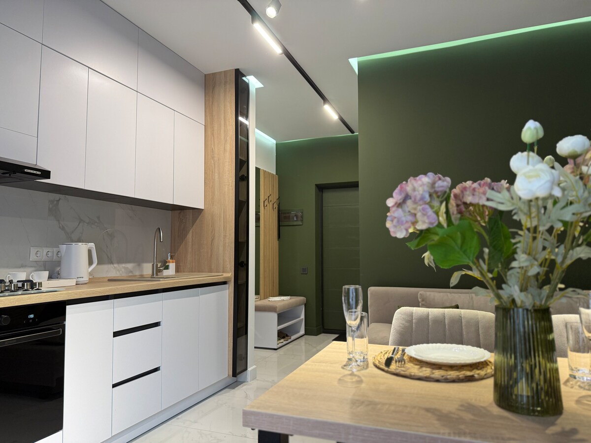 Welcome to our enchanting apartment, perfectly nestled in the heart of the bustling city center, offering you a serene oasis with breathtaking panoramic views of the surrounding park from your very own private balcony. Step inside and immerse yourself in the modern comfort and elegance of our thoughtfully designed space. The living area is bathed in natural light, with panoramic windows framing the verdant beauty of the park below.
