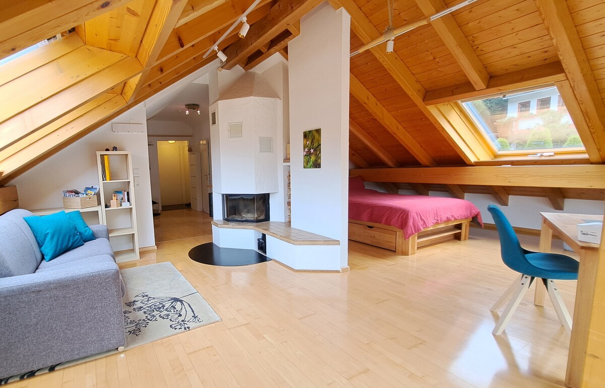 40m² helles Dachstudio mit Kamin & Panoramablick