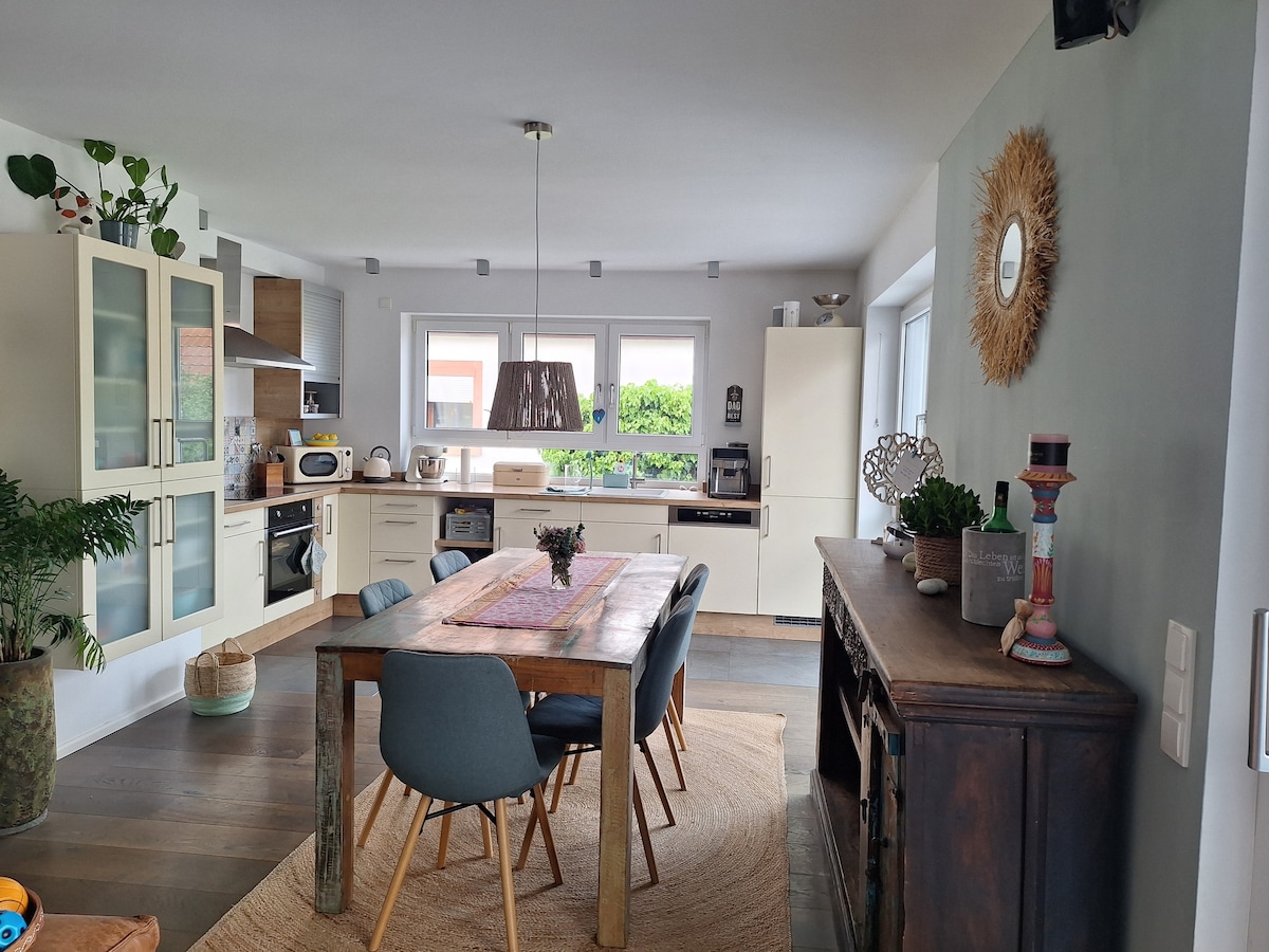 Dobrodošli v našem očarljivem stanovanju z eno spalnico in dnevno sobo. Z zakonsko posteljo in raztegljivim kavčem stanovanje udobno sprejme do 4 goste. Za vaše udobje je na voljo tudi kuhinjska niša. Hiša za goste je neodvisna od glavne stavbe, kar zagotavlja zasebnost in mir. Brezplačno parkiranje je na voljo tik pred hišo. Idealno se nahaja le 5 minut od avtoceste A5, 18 minut od Heidelberga in le nekaj metrov od tramvajske postaje.