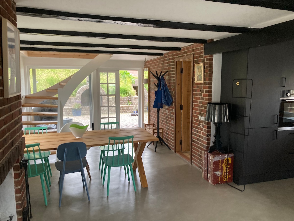 Dvorišče ' ☀️🏡⛱️ Na dvorišču naše vrstne hiše je na novo zgrajena in udobna prizidka z visokimi stropi. Blizu plaže, mesta in trgovin ter z lastno teraso, kjer lahko večerjo pripravite na žaru in uživate v zadnjih sončnih žarkih. Na voljo je prostor za 4 odrasle osebe, razdeljeno na eno spalnico v pritličju, poleg tega pa tudi predelano stanovanje v 1. nadstropju. Priloga ima svojo teraso in vhod, vendar vsebuje možnost »dobrega jutra« za nas, kot je na našem dvorišču 👫🏼👋🏻 Brezplačno parkiranje na javnih cestah.