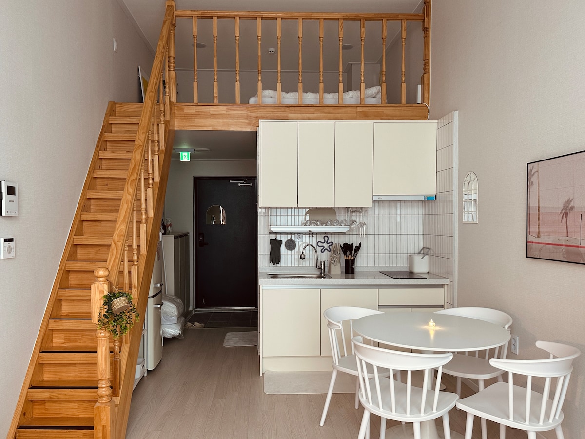 🏡 V Novem mestu Pangyo Daejang-dong, mirno in zračno drugo nadstropje na novo zgrajene poslovne hiše Gre za sentimentalno dvosobno garsonjero. - Zunanje parkirišče je na voljo v prvem nadstropju same stavbe, Na voljo sta dve sobi in dve postelji, zato, če ste srednje- do dolgotrajni gost za družine z otroki in goste s psi To je najboljši kraj :) - Beli ton je miren, vendar čutni slog Uživajte v glasbi, filmih in sproščanju v bivalnih prostorih