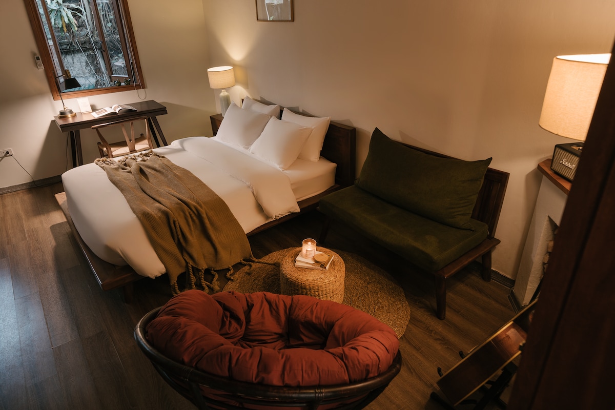 Uživajte v stari četrti Hanoja iz sodobnega zatočišča, ki je le nekaj korakov stran od legendarne ŽELEZNIŠKE ULICE. To stanovanje ima SUPER VELIKO ZAKONSKO POSTELJO, UDOBEN KAVČ in razkošno kopalnico s prho in LESENO KADJO. Kuhajte v ZASEBNI KUHINJI in se sprostite s PROJEKTORJEM 100-INCHES in omrežjem Wi-Fi. VELIKO ZVOČNO IZOLIRANO OKNO ponuja živahen razgled na ulico, ki združuje čar Hanoja z udobjem doma. Idealno za popotnike, ki iščejo edinstveno in mirno bivanje v središču mesta.