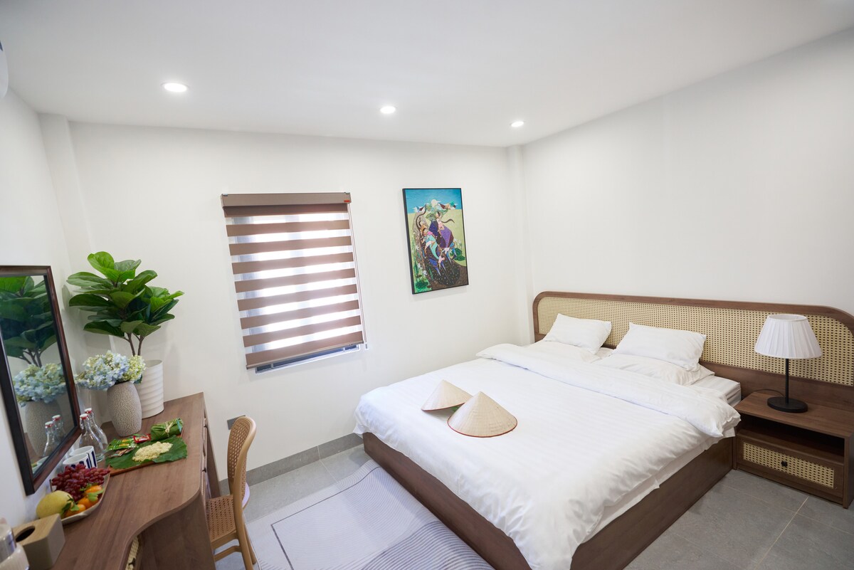 Apriltwelve Nest—a thoughtfully designed space where East meets West in the heart of Hanoi. Nestled in a peaceful alley of Hoan Kiem, surrounded by greenery and traditional living, this cozy room blends handpicked vintage details with modern touches. Just a 6-minute walk to Hoan Kiem’s main sights and only 4-minutes to the tourist bus station. A soulful stay for those who seek calm within the city’s vibrant rhythm.