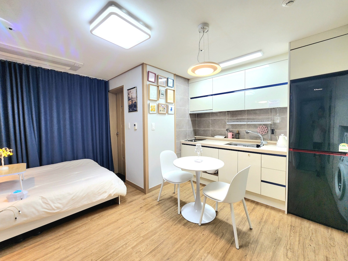 Dobrodošli v L201 To je na novo zgrajen, sodoben in umetniški kraj, ki se nahaja na najjužnejšem delu otoka Seogwipo. ▶Obala Hwangwooji (potapljanje z masko ali plavanje) : 3 min z avtomobilom Tržnica ▶Olle: 10 min z avtomobilom ▶Jeju Olle 7 tečaj: 2 min hoje ▶Nakupovalno središče(E-mart), kavarna, restavracija itd.: 5 min z avtomobilom ali peš ♥ 15% dodatnega popusta za tiste, ki bivajo več kot 1 teden. ♥ 25% dodatnega popusta za tiste, ki bivajo en mesec(največ).