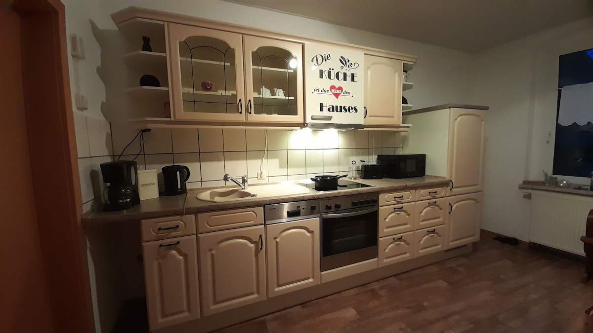Udobno 2 sobno stanovanje v Stanovanje »Gesindehaus Unternessa«, mehanično stanovanje ali za popotnike 1-2 osebi (zakonska postelja 1,80 x 1,90m, možna tudi kot enojne postelje) 1-2 osebi več na raztegljivem kavču (1,40 x 2,00m). Mirna lokacija na obrobju Unternessa, parkirišče pri hiši, samo 4 km od izhoda A9 Weißenfels, Leipzig, Naumburg, Merseburg, Leuna, Zeitz, Halle itd. je hitro dostopen. V vrtu Žar/ognjišče, po dogovoru.
