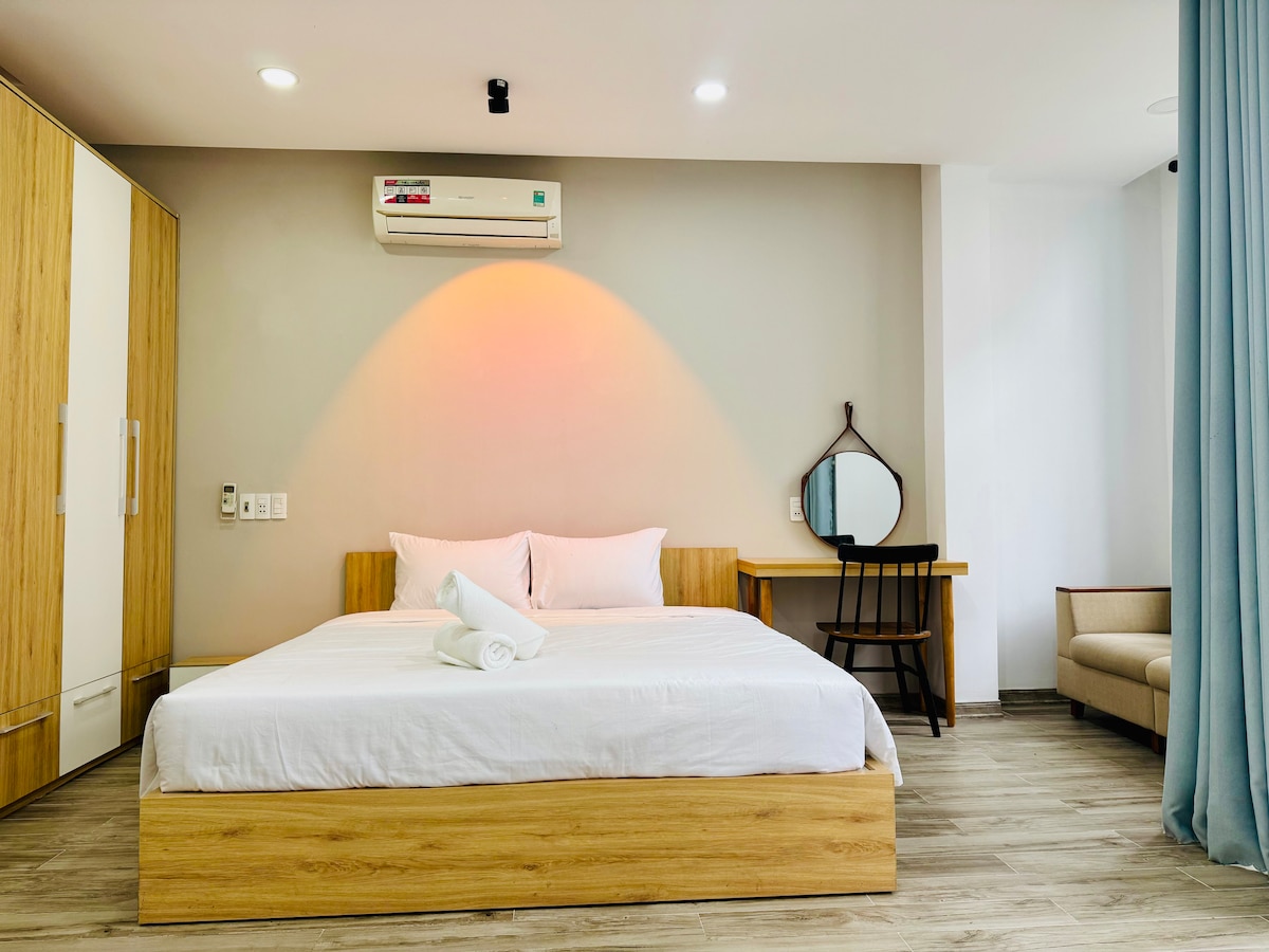 Dobrodošli v Rose Sea House, sodobnem 4-nadstropnem prenočišču, ki je od plaže My Khe oddaljeno le 4 minute hoje, obdano pa je z restavracijami, kavarnami in mini tržnicami. Hiša ponuja 5 spalnic z zasebnimi kopalnicami in eno skupno kopalnico, idealno za družine ali skupine. V dnevni sobi v prvem nadstropju je klavir, kjer se lahko sprostite in delite glasbo z drugimi. Svetla jedilnica in popolnoma opremljena kuhinja sta v drugem nadstropju. Četrto nadstropje je miren prostor za branje, meditacijo ali jogo, z vrtnicami in dostopom do strehe.