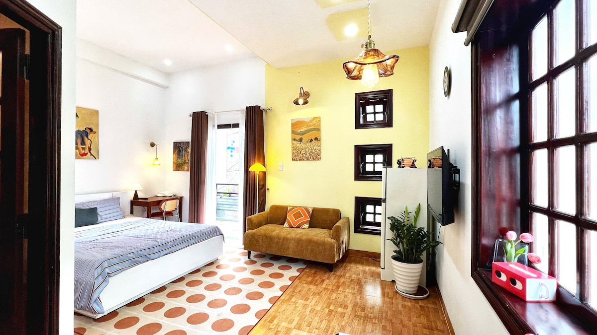 Naša hiša se nahaja v majhni ulici na ulici, vzporedni ob reki, le nekaj korakov stran od reke Hoai. Hiša ima prostorno kuhinjo in dnevno sobo, vsaka spalnica pa ima okna in balkone, ki so polni sončne svetlobe in vetriča iz obeh rek na obeh straneh. Nahaja se na robu starega mestnega jedra, le 300 metrov od japonskega pokritega mostu, obkrožen s kavarnami, restavracijami in trgovinami. Idealno za družino s 6 odraslimi osebami.