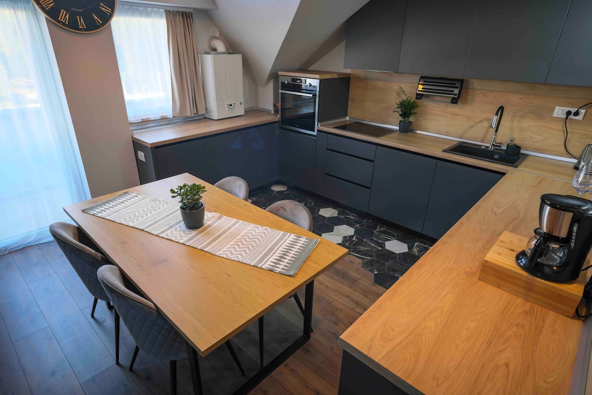- Free parking on premises. - 85 m2, with AC in each room. - Spacious 2-bedroom for 4 guests. - Living room with an extensible sofa for an additional 2 guests. - 1.5 bathrooms - Modern amenities including a TV, desk, coffee maker and more. - Balcony with a charming view of the city. - Ideal location in the City Center, close to attractions such as Central Park, Union Square, Old Town, The Botanical Garden, museums, restaurants, pubs, Babes-Bolyai University and many more.