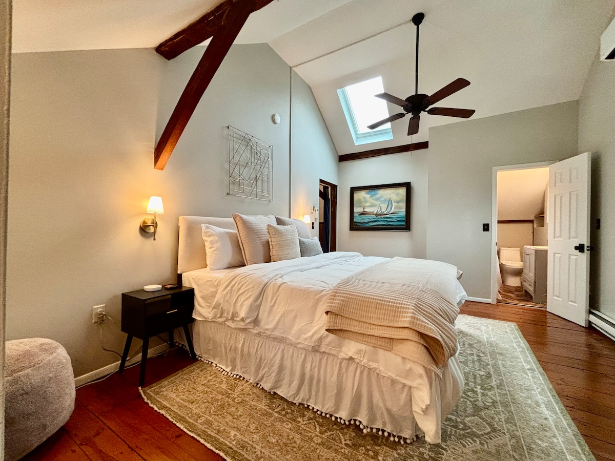 Nestled in the heart of Frenchtown NJ, you'll find enchantment hidden in the lush gardens of River Witch Cottage. • Restore yourself in a luxe queen bed • Prep a simple meal in the fully equipped kitchen • Nourish yourself in the charm of an intimate dining area • Recline in cozy comfort beside a beautiful gas fireplace • Rejuvenate in the jets of the jacuzzi tub, soaking under the natural glow of skylights • Morning coffee or evening wine in the tranquil setting of the private outdoor patio