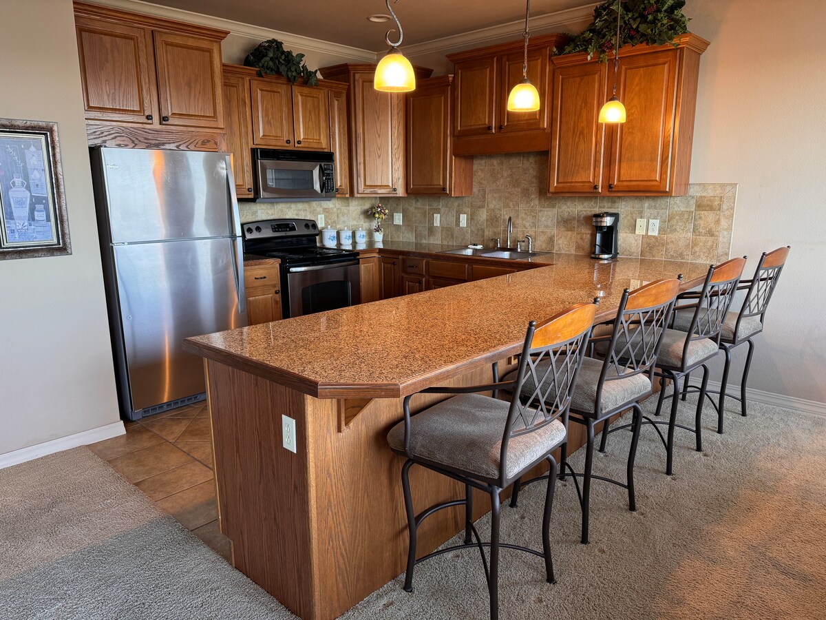 The Royale Retreat is just minutes from the heart of Branson and boasts one of the best panoramic views in Pointe Royale overlooking the 10th hole. This private and clean top floor end-unit condo has been updated with your comfort and convenience in mind. Pointe Royale is a private gated neighborhood with tons of amenities including seasonal outdoor pools, year-round heated indoor pool & hot tub, courts, playground, dog parks, fishing access, trail, and a Championship 18-hole Golf Course.