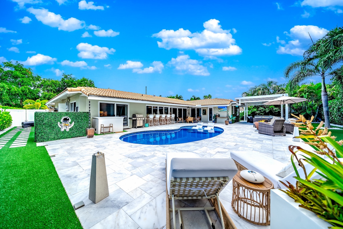 🌴Dobrodošli v svojem oddihu ob kanalu! Z družino se zabavajte v bazenu ali pa uživajte v pijači v masažni kadi in vgrajenem novem baru. 🍹Naša zunanja sedežna površina ima televizor 📺 – kot nalašč za gledanje vaše najljubše ekipe ali za družinski filmski večer. 🍔🔥Sprostite se pod paviljonom z žarom 💪🏋️♀️ali pa telovadite v zunanji telovadnici. 🛌Udobne spalnice in dve prenovljeni kopalnici zagotavljajo odlično bivanje. Le nekaj minut od čudovitih obal in restavracij v mestu Pompano Beach. 🏖️