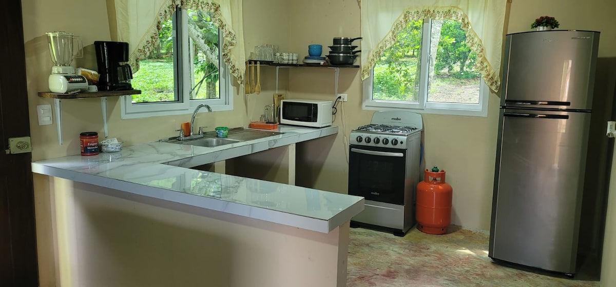 Dobrodošli v Casa Mono - živahni »studio style« casita, ki se nahaja na bujnem vrtu Puerta Azul. Casa Mono je kot nalašč za goste, ki iščejo samostojno pripravo hrane »drug od doma«. Na voljo je kuhinja, udobna zakonska postelja, dodatna enojna postelja, zasebna kopalnica in velika veranda. Sprostite se v osebni viseči mreži, srkajte kavo na stolih adirondack ali pa se sprehodite do plaže - manj kot 1 minuto hoje skozi namestitev.