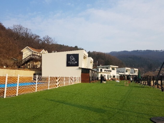 홍천 펫티움 애견펜션 단층 애견동반객실예약창 600평 인조잔디