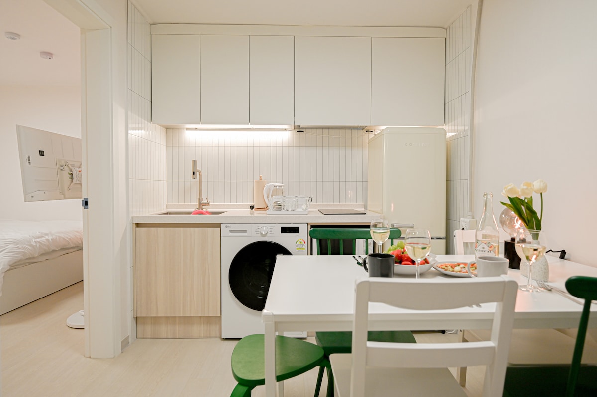 Odprto leta 2023 To je bivališče s polno možnostjo - Prihod brez stika [Spalnica] - zakonska postelja (Queen) [Kuhinja] - različne pripomočke za kuhanje, ki jih je enostavno skuhati - hladilnik, mikrovalovna pečica, električni grelnik vode - pralni stroj, detergent za perilo * ne nudimo nobenih začimb. [kopalnica] - šampon, balzam za lase, gel za umivanje telesa - Sušilnik za lase, brisača - V sobi je bide *Ne nudimo kopalniških izdelkov za enkratno uporabo (zobne ščetke, zobna pasta itd.) * V stavbi lahko parkirate proti plačilu.
