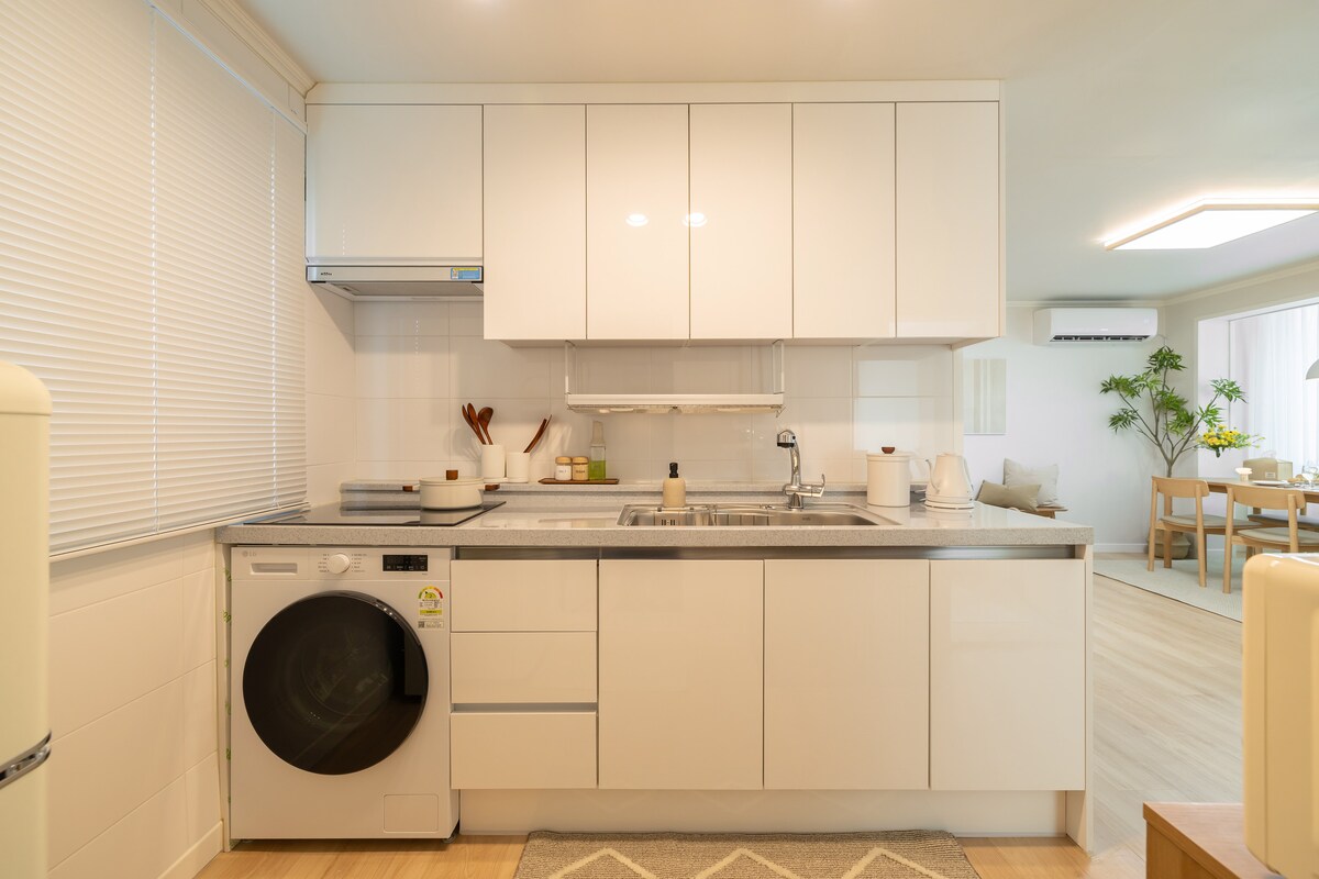 📍 위치 홍대 레드로드 3분, 합정역, 공항버스 도보 6분 거리! 인천공항에서 공항버스로 직행 가능해 여행객도 편리하게 오실 수 있어요. 홍대의 맛집과 카페, 올리브영 및 다이소 등 활기찬 분위기를 도보로 편하게 즐길 수 있는 위치입니다. 🏡 숙소 구성 & 특징 • 단독층 전체를 사용하는 독립형 숙소로 프라이버시가 보장돼요. • 넓고 햇살 좋은 거실, 감각적인 주방, 쾌적한 에어컨 완비! • 엘리베이터로 편하게 이동 가능하며, 최대 6인까지 넉넉히 숙박하실 수 있습니다. ✨ 이런 분들께 추천드려요 ✔ 가족 여행 – 아이들과 함께 머물기 좋은 조용한 주택가 ✔ 연인 여행 – 아늑한 감성과 독립적인 공간 ✔ 친구 모임 – 단체 여행에도 부담 없이 머무를 수 있어요 💖 이 숙소만의 매력 세련된 인테리어와 아늑한 분위기, 그리고 완벽한 입지! 감성과 실용성을 모두 담은 이 공간에서, 여행의 매 순간이 특별한 추억으로 남을 거예요.