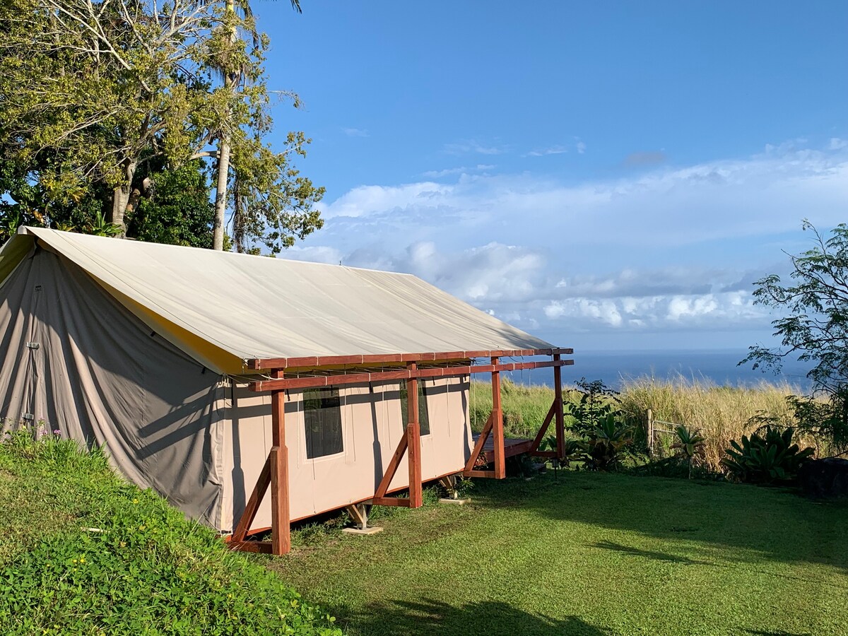 Šotor na platformi Ocean View v Waipiʻo Lodge
