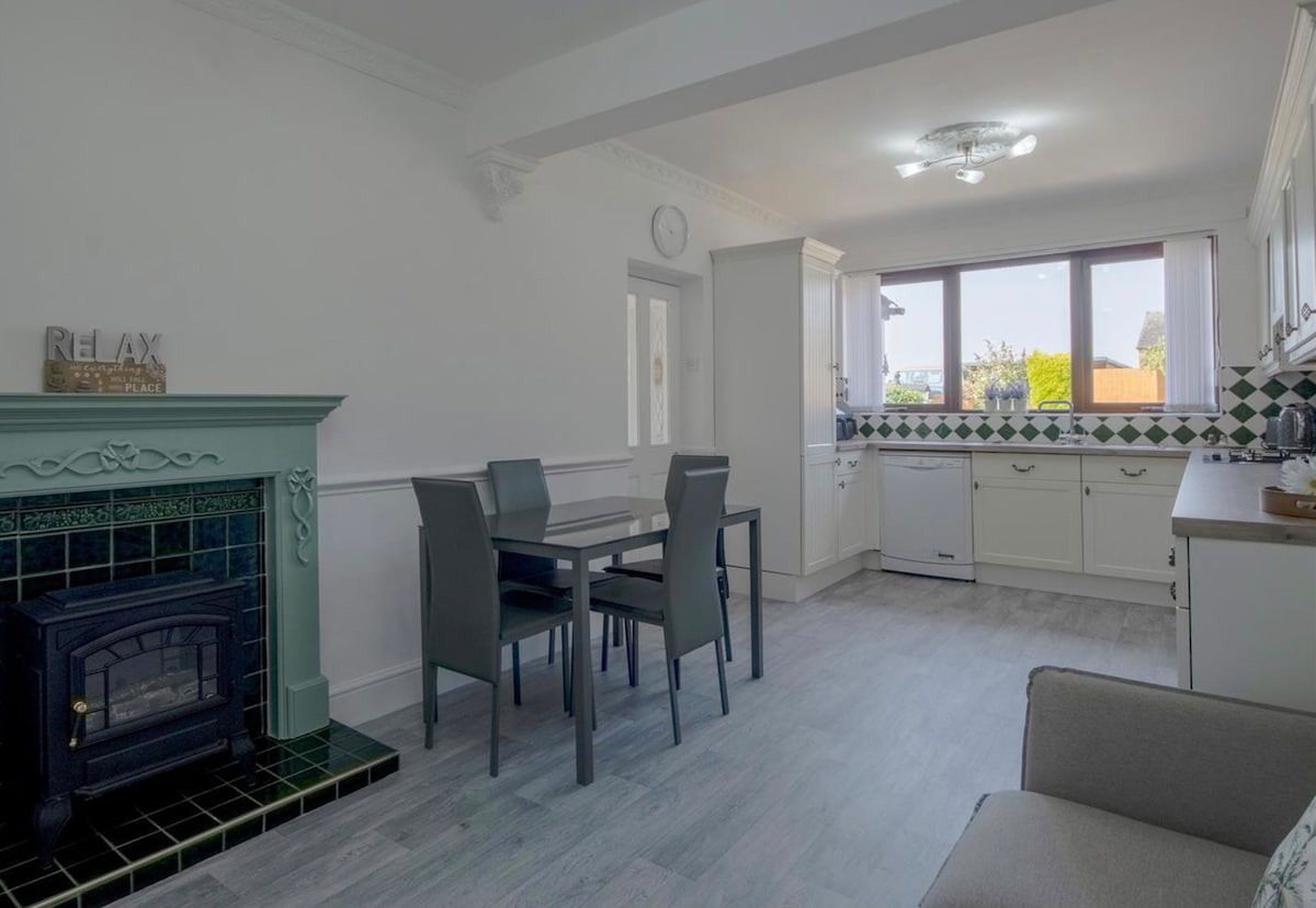 Our dog friendly, modern two bedroomed bungalow (next door to our family home) is situated on a country road. Two large bedrooms, one with an en-suite, one large bathroom. Large light open plan dining/living room with french doors onto the south facing, pet safe garden, equipped with patio area with seating. The kitchen has oven, hob, dishwasher, microwave and fridge. There is a washing machine and sink in the utility. Three car park spaces.