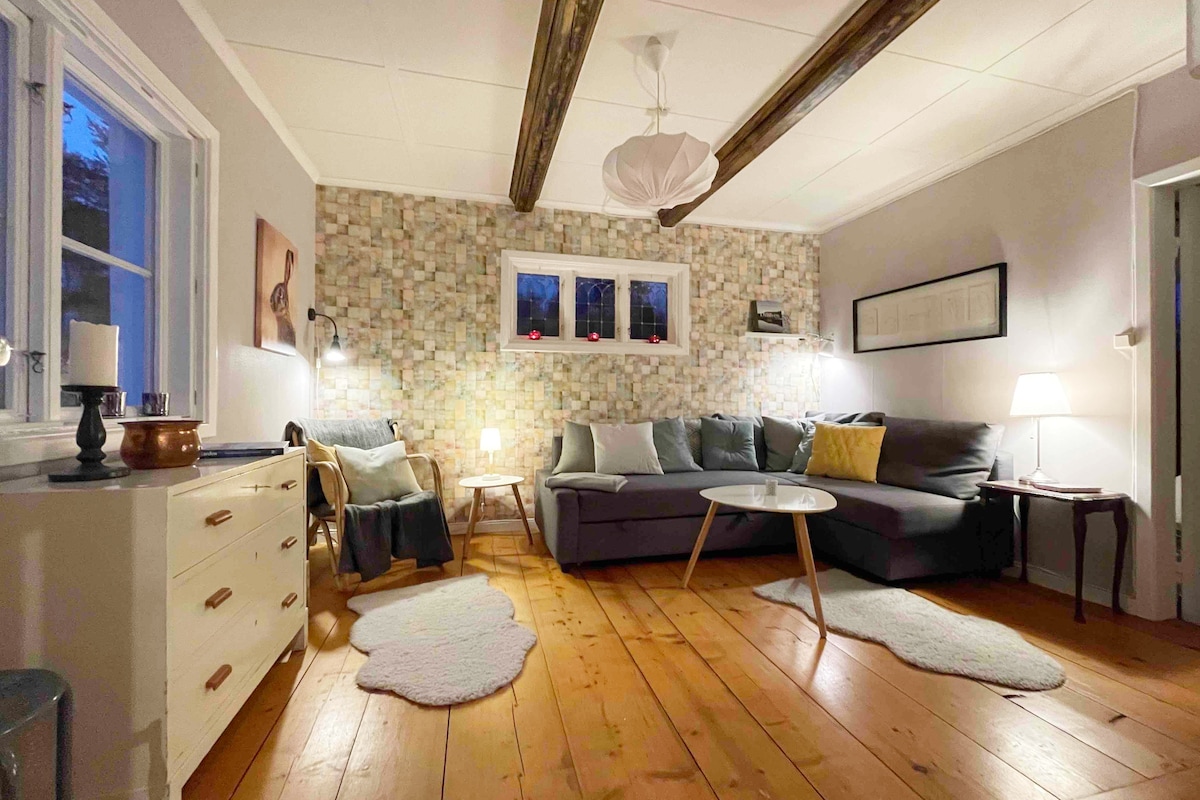 Soba s kuhinjsko nišo, 25 kvadratnih metrov. Kopalnica s prho. Zakonska postelja (širine 120 cm) in raztegljiv kavč za 2 osebi. Nastanitev je primerna za 2 odrasli osebi, vendar je na voljo tudi prostor za 2 majhna otroka. Kuhinja je opremljena s štedilnikom, hladilnikom, mikrovalovno pečico, grelnikom za vodo in aparatom za kavo. TV in Wi-Fi. Brisače in posteljnina so vključene. Na voljo je tudi pralnica, ki se nahaja v glavni stavbi. Za posteljnino in podobno zaračunamo strošek čiščenja v višini 200 SEK. Vendar pa pričakujemo, da boste pred odhodom opravili temeljito čiščenje.