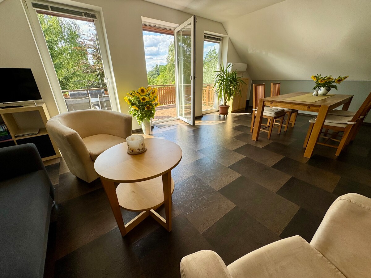 Ponujamo vam svetlo, zelo prostorno, udobno in popolnoma opremljeno stanovanje DG. Zelo velik balkon (približno 3 x 7 m) z zahodno orientacijo ima visoko vrednost za prosti čas in rekreacijo, zlasti zvečer. Naša hiša se idilično nahaja na obrobju dobro vzdrževanega predmestja Lübbener. Lübben kot prehod v zgornji in Unterspreewald je odlično izhodišče za izlete v obe regiji. Kolesarska pot s kumaricami vodi neposredno mimo hiše. Kot gostitelji smo z vami z dbzglom. Nasveti ob strani.
