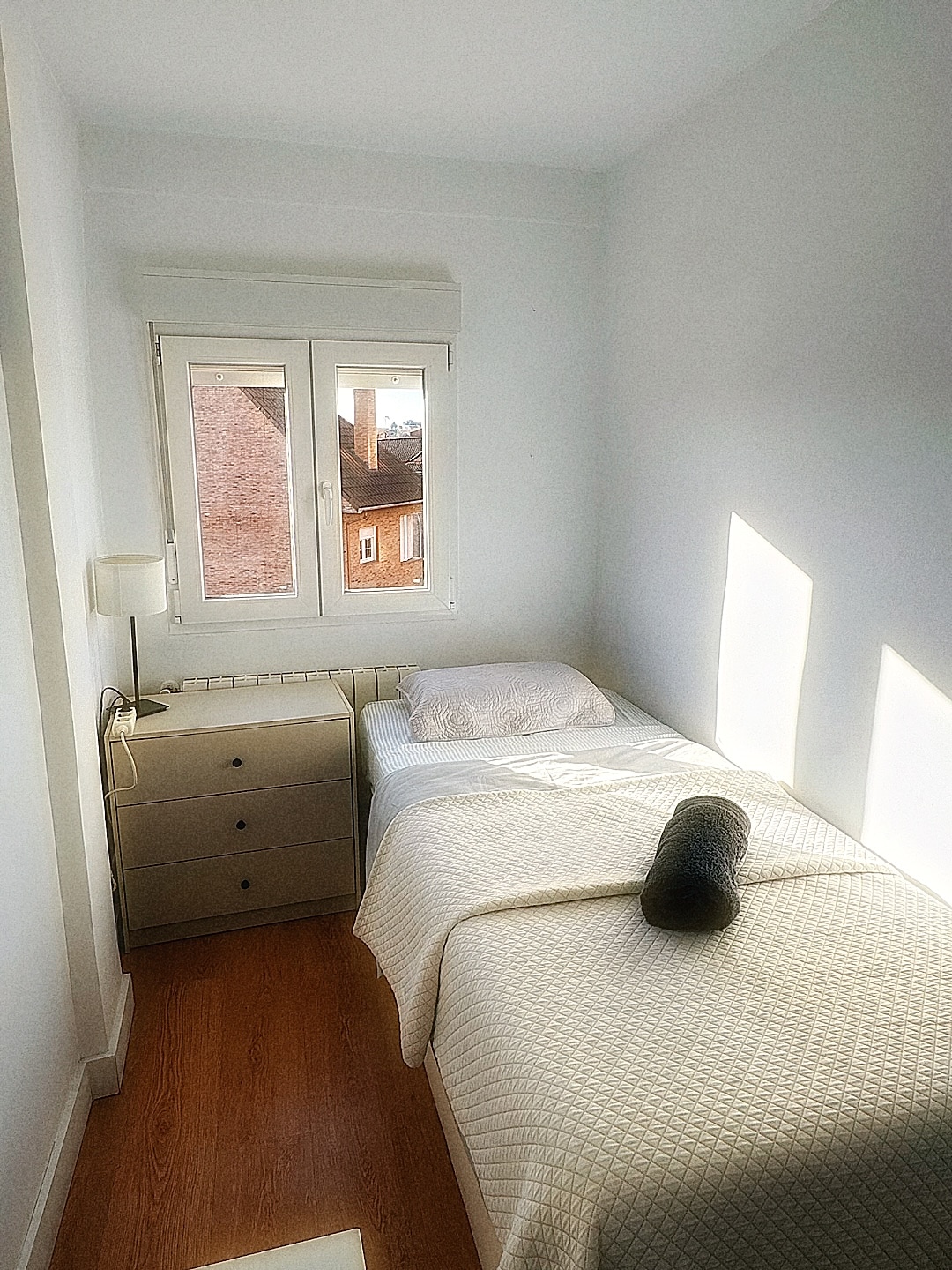 Zelo svetlo novo stanovanje z 1 zelo prostorno spalnico, polno kuhinjo in delovno mizo. Nahaja se v mirni soseski, z enostavnim brezplačnim parkiranjem ter trgovinami in supermarketi. Nekaj minut hoje od IFEMA, prihodnjega MadRinga in postaje podzemne železnice San Lorenzo, kjer se lahko peljete po liniji 4, ki vodi neposredno do središča Madrida. Poleg čistilnih sredstev in brezplačne hrane imate na voljo tudi potrebne pripomočke za bivanje. Turistično dovoljenje: AM-1499.