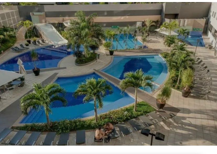 Um apto c/ 3 suítes, todas c/ ar cond, cozinha muito bem equipada, sala com ar cond, banheiro social, sacada e vista p/ piscinas. O apto fica no Veredas Flat Service, que conta com piscinas aquecidas e frias, piscina coberta, sauna, 2 jacuzzis, academia, espaço infantil, salão de jogos, restaurante, estacionamento e muito mais. Ótima localização, a 400m do Hot Park, próximo de restaurantes e lojas. Não cobramos taxa de estacionam, nem pulseira e nem p/ acessar área de lazer do condomínio