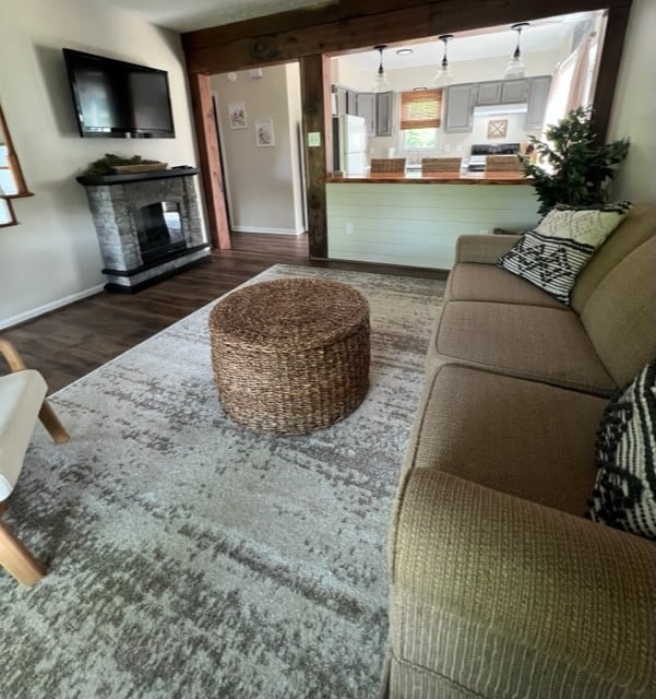 The apartment has a living space featuring a couch and tv for relaxing after a long day of hiking nearby trails and a desk for tidying up some loose ends (wifi included) before your big meeting. 1 queen, 1 full bed. Enjoy your stay here with all the amenities of home as this apartment has a full kitchen and bath along with a washer and dryer combo. Within walking distance to some of Virginia's best outdoor activities. Gym access available upon request. Two night minimum stay required.