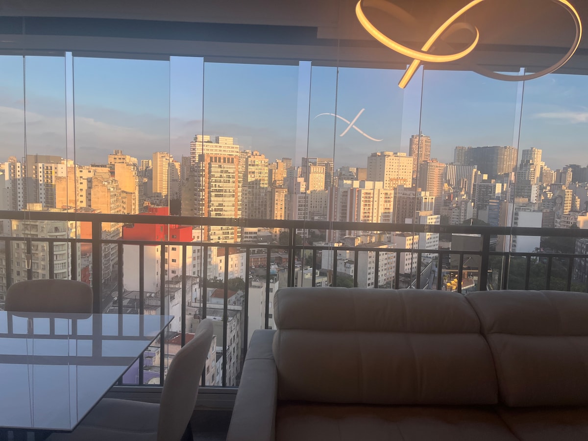 Apartamento sofisticado com vista incrível do skyline, a poucos passos da Avenida Paulista. Ambiente moderno, amplo e totalmente equipado, com muita luz natural e conforto. Localização privilegiada, perto de restaurantes, cafés e das principais atrações da cidade. São 120m², com 3 quartos, sendo 2 suítes e 1 banheiro social (total de 3 banheiros). Acomoda confortavelmente até 5 pessoas: • 2 camas queen • 1 cama de solteiro Lavanderia equipada com lavadora.