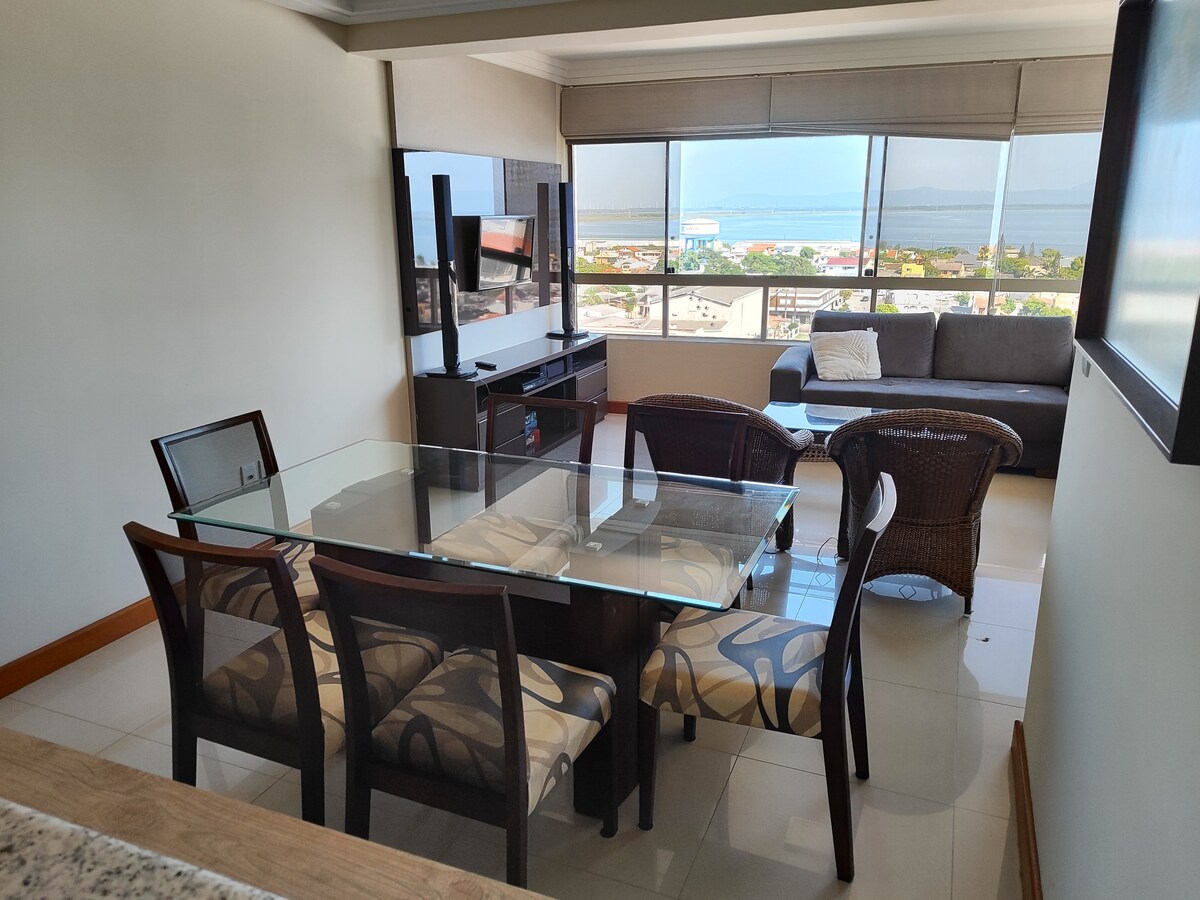 Enjoy the Tramandaí coastline in an excellent beachfront apartment, located on the 12th floor, well-ventilated, and with a stunning view of the beach. The space has everything you need for a peaceful stay: internet, beach chairs, cable TV, appliances, bed linens, and towels. Located just steps away from a wide variety of beachfront bars and restaurants, and about 700m from the city center.