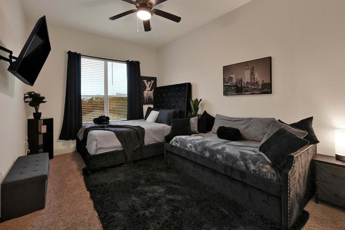 Sprostite se v prenočišču Velvet Stay v prostornem sodobnem dvoposteljnem prenočišču z 2 kopalnicama, le 3 km od stadiona NRG in manj kot 10 minut od Teksaškega medicinskega centra. Uživajte v priljubljenih v bližini, kot so Hermann Park (6 min), živalski vrt v Houstonu (8 min) in središče Houstona (10 min), ki so na dosegu roke. To mirno stanovanje v središču mesta združuje razkošno hotelsko vzdušje z udobjem doma, ki vključuje popolnoma opremljeno kuhinjo, kavni bar in udoben dnevni prostor, ki je kot nalašč za sprostitev po raziskovanju Houstona.