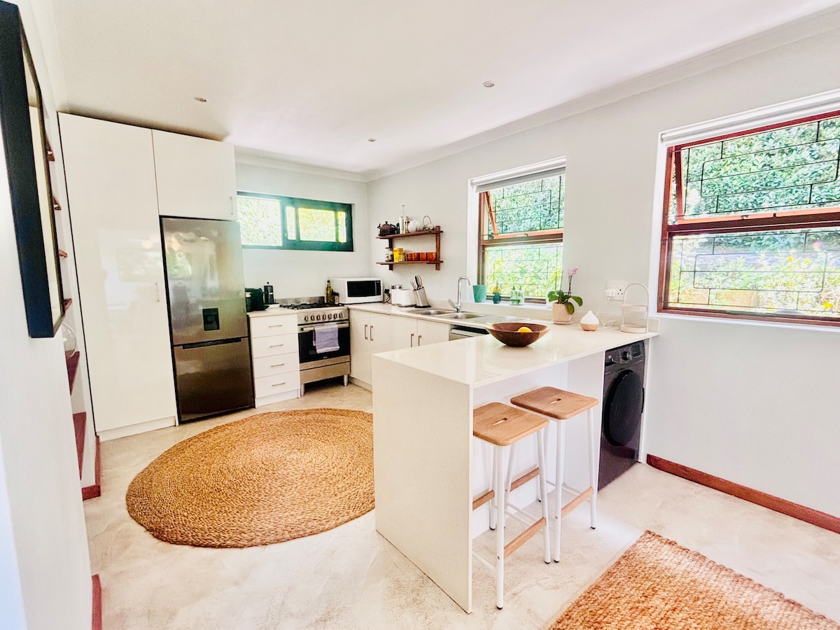 Sproščujoča hiška na hribu v zalivu Hout s pogledom na gore. Naša na novo zgrajena hiša za goste odprtega tipa je zračna in polna naravne svetlobe, obdana z bujnim vrtom. Popolnoma opremljena kuhinja, sodobne površine, z brezhibnim dostopom do sončne terase. Udobna spalnica s pogledom na gore. Brez ločevanja, ker imamo sončno energijo. Zasebni vhod z zavarovanim parkiriščem v mirni soseski, pametno televizijo z Netflixom, hitrim Wi-Fi-jem in kratko vožnjo do idiličnih plaž, trgovin in turističnih destinacij.